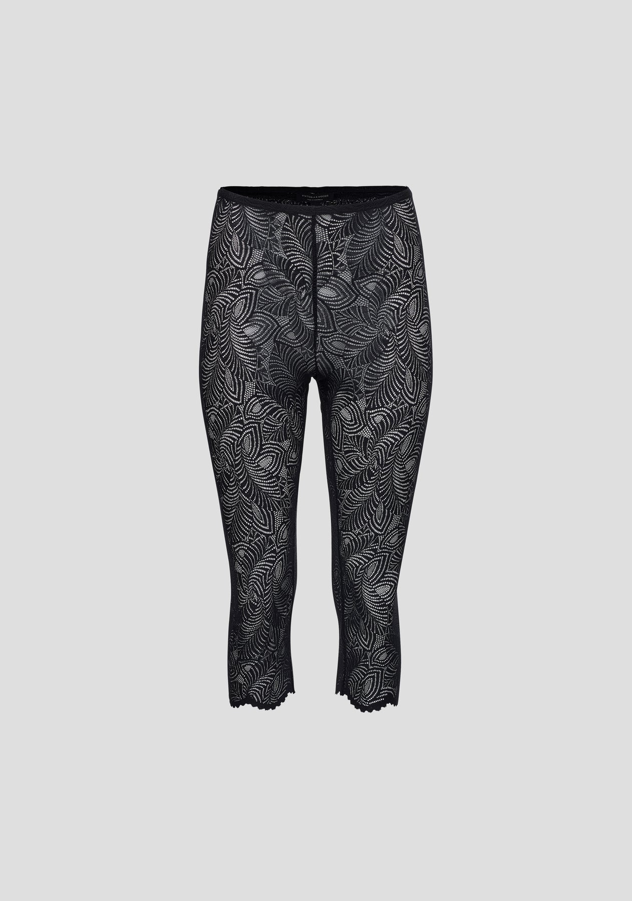 The Zahara Capri, crafted in black sheer fine knit, features a clean, three-quarter length silhouette, serving as a versatile canvas for layering or a standalone statement. Designed with a mid-rise cut and internal elasticated waistband, it’s finished with a delicate scallop-edge hem. Add artful detail to your outfitting, or pair back with the Jolie Cami for a effortlessly confident look.