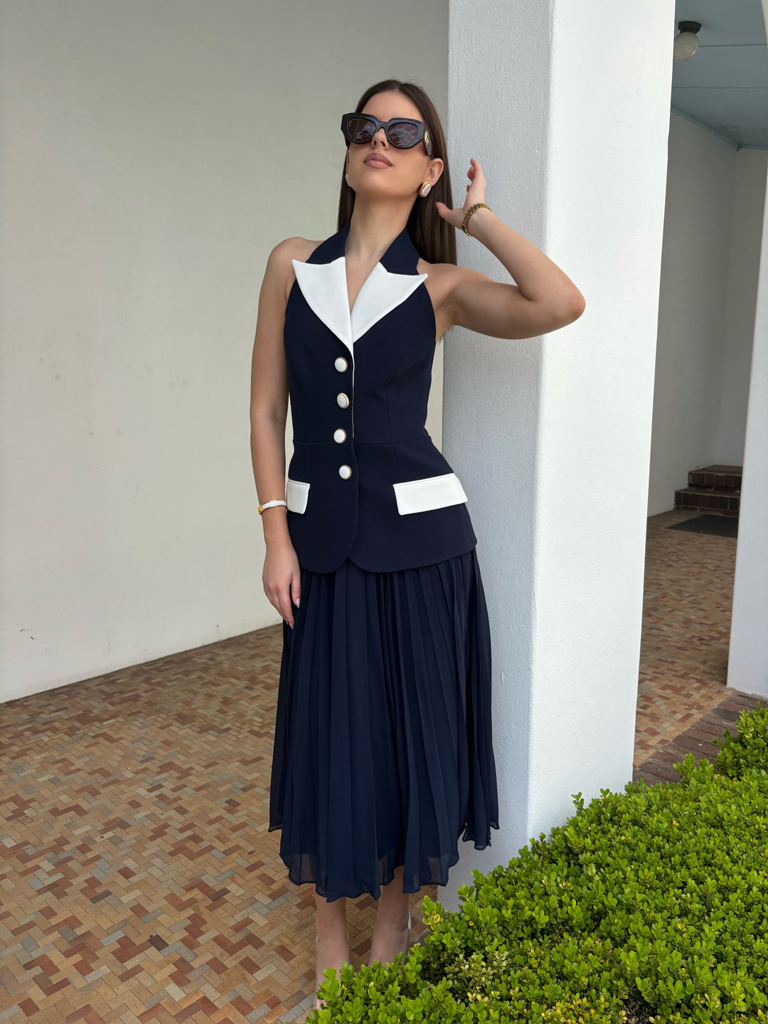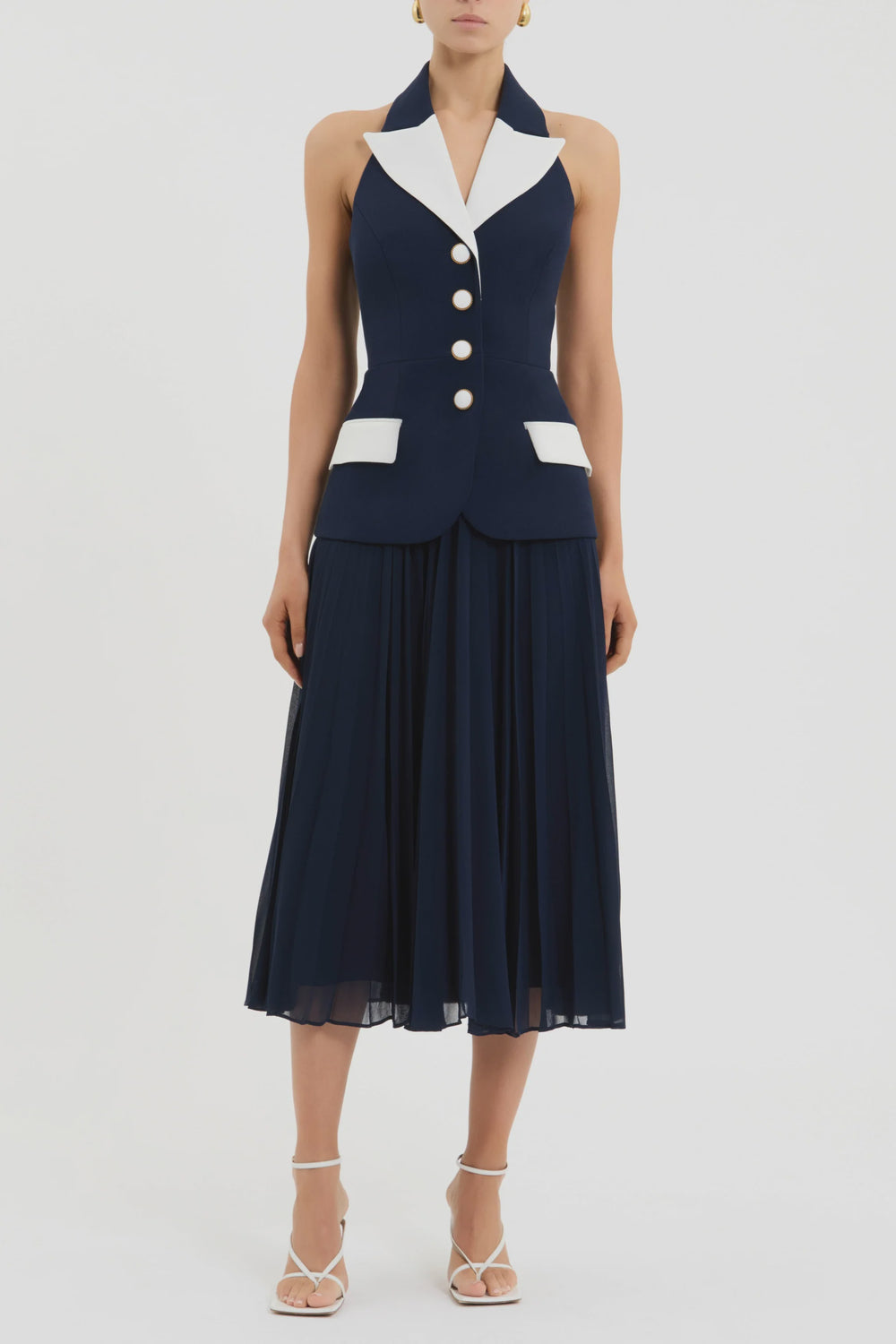 ASTERI HIGH NECK MAXI DRESS - SILVER MARINE