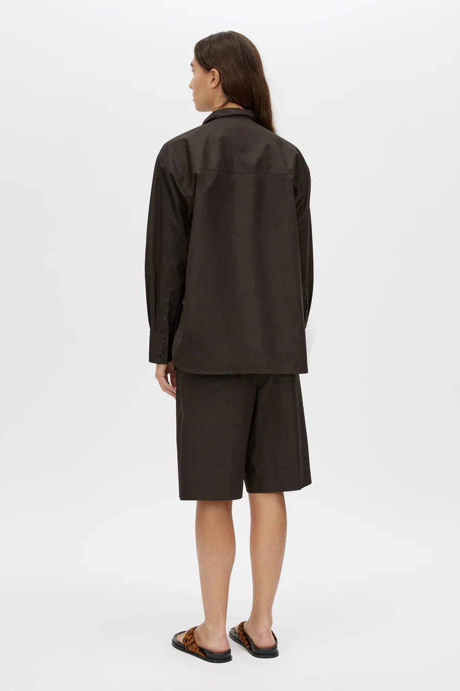 CAMILLA AND MARC Java elasticated cotton short in espresso brown. Gathered waistband, side seam pockets, blind hem.