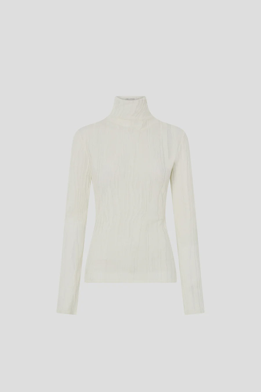 CAMILLA AND MARC Nova textured knit long sleeve skivvy top in cream. Blind baby locked hem. Shoulder seam invisible zip closure.