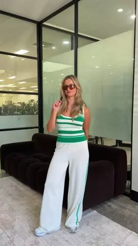 The Retreat Knit Tank in College Green Stripe is made from a lightweight knit fabrication with a soft hand-feel. This scoop-neck tank features a classic stripe design and a metal logo patch at the hem. Style it back with the Retreat Knit Pant for an effortless, co-ordinated look.