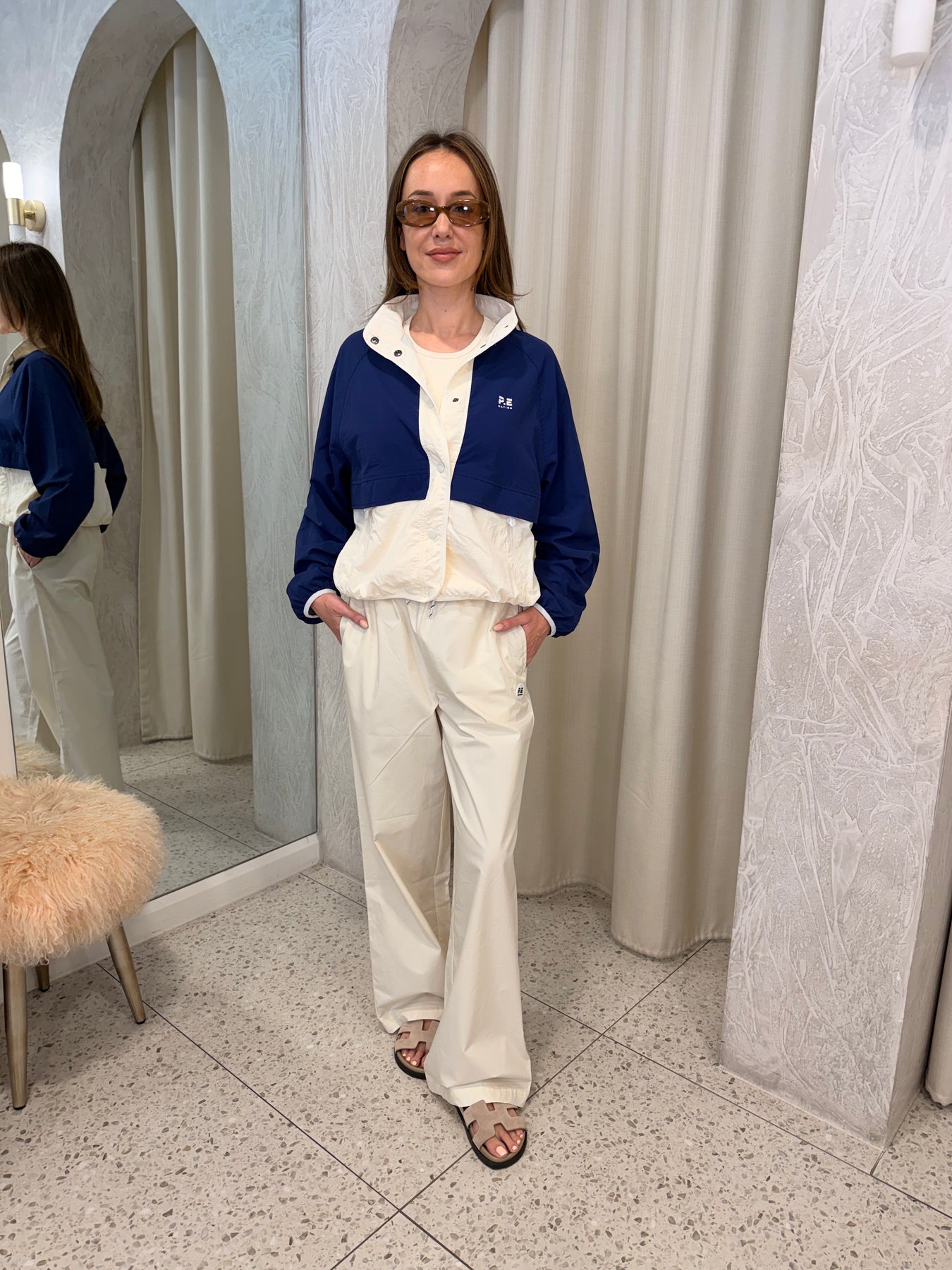 The Technique Spray Jacket in Bright Navy, our top selling jacket now in our signature spray fabrication. This relaxed fit, contrast spray jacket features panelling and a contrast snap placket on the front. Style this jacket over active wear for an elevated athleisure look.