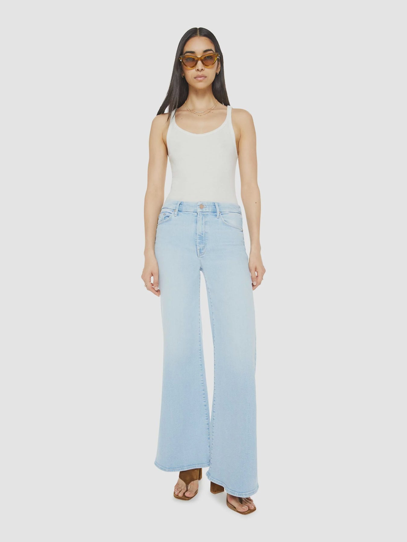 Make your move. 70s-inspired wide-leg jeans with a mid rise, 32-inch inseam and a clean hem. Made from stretch denim, Ball's In Your Court is light blue with fading throughout.