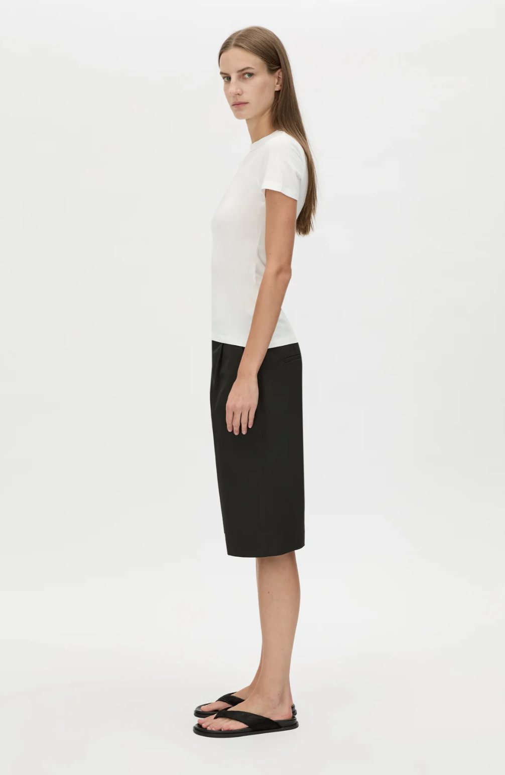 CAMILLA AND MARC Suvero slim fit printed white cotton blend t-shirt with a centre front contrast logo.